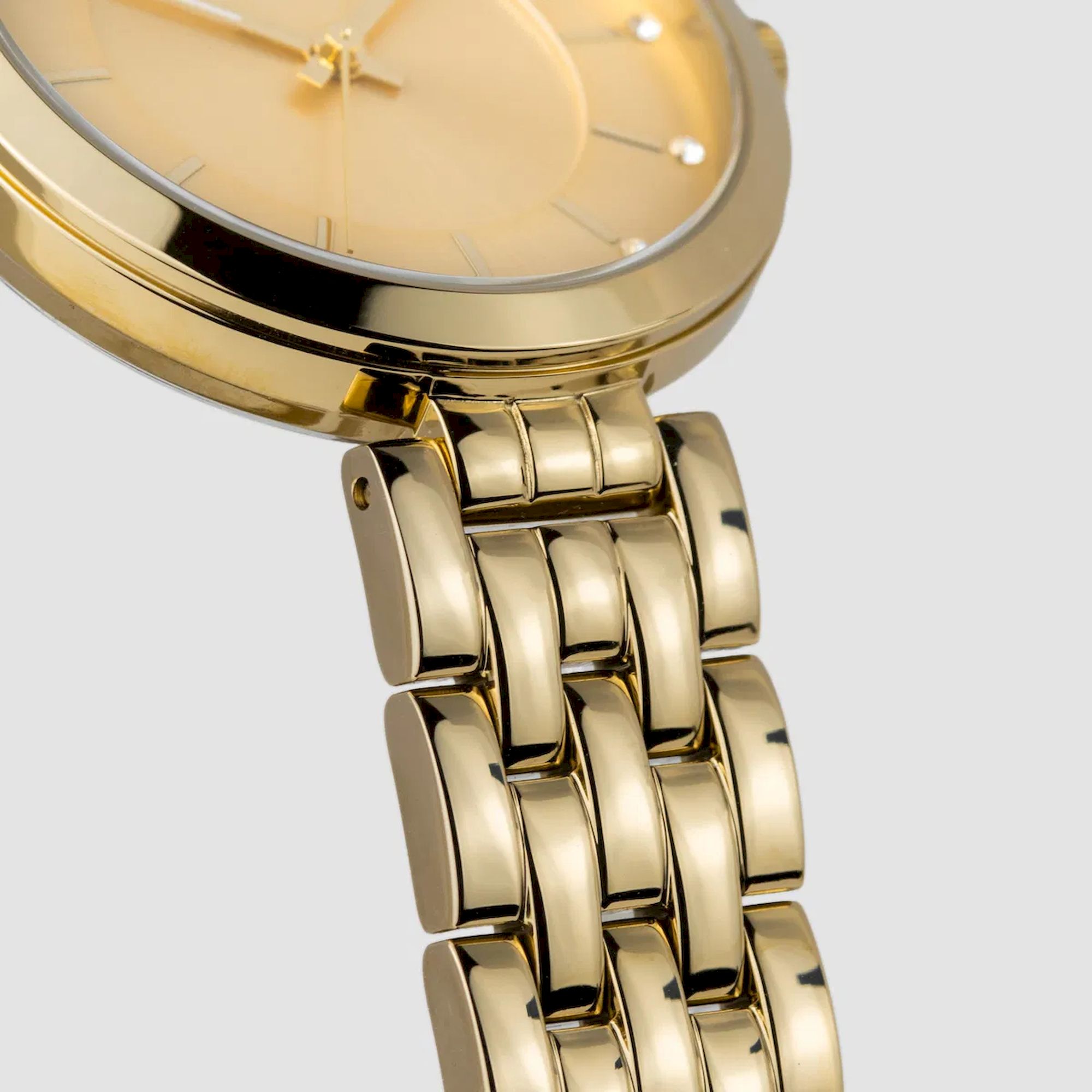 На циферблате закреплены четкие риски, каждая из которых выделена кристаллом SSwarovski®